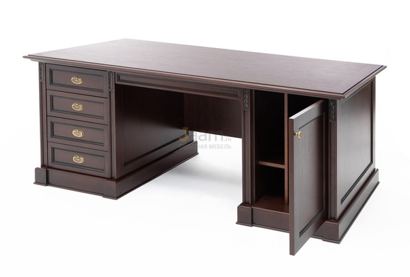 Стол письменный L206 106 102 WAL №46816 - столешница: дсп шпон 38мм мм, кромка: массив, покрытие: шпон, стекло: прозрачное.ШxГxВ | 206x95x77 |