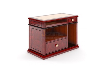 Мебель "Romano" дает желающим шанс противостоять привычным устоям, исключив чрезмерную деловитость. Кабинет руководителя выглядит ярко, насыщенно, в обстановке чувствуется толика романтизма. Удачное сочетание цвета беж и оттенка бордового настраивает на позитив и призывает к мышлению креативному. Набор состоит из основного стола весьма уникальной формы, его журнального варианта и офисной тумбы. Интерьер дополняют удобные кресла в таких же тонах. Изящество и элегантность здесь "поселились" уверенно.